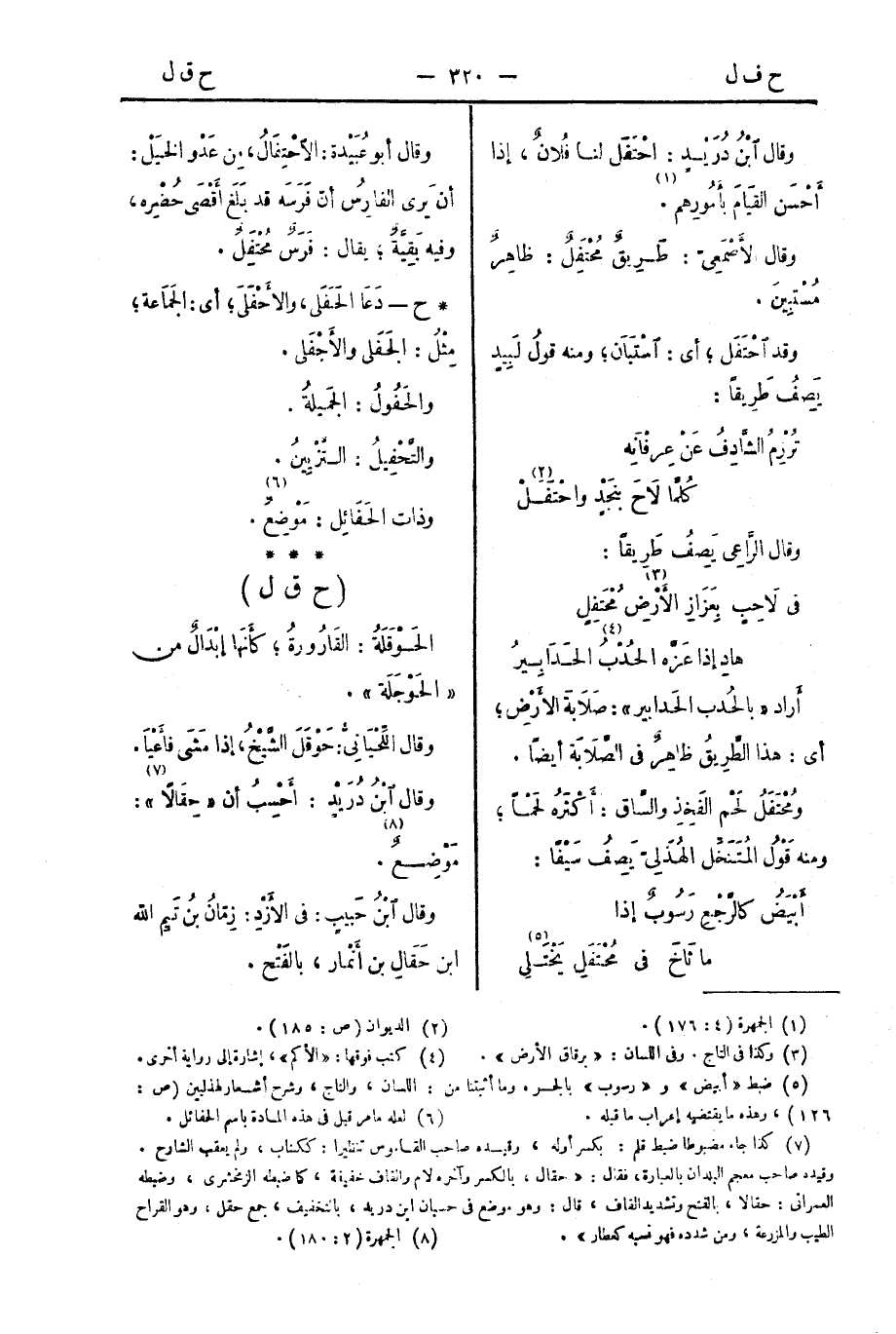 * ح - دَعَا الحَفَلَى، والأَحْفَلَى؛ أي: الجَمَاعَة؛ مِثُْ: الجَفَلى والأَجْفَلَى.