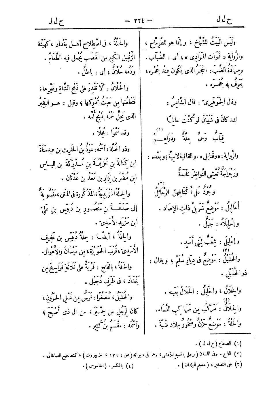 والحَلَّةُ، بالفتحِ: قَرْيَةٌ على ثَلاثَةِ فَرَاسِخَ مِنْ بَغْدَادَ، في طَرَفِ دُجَيْلٍ.