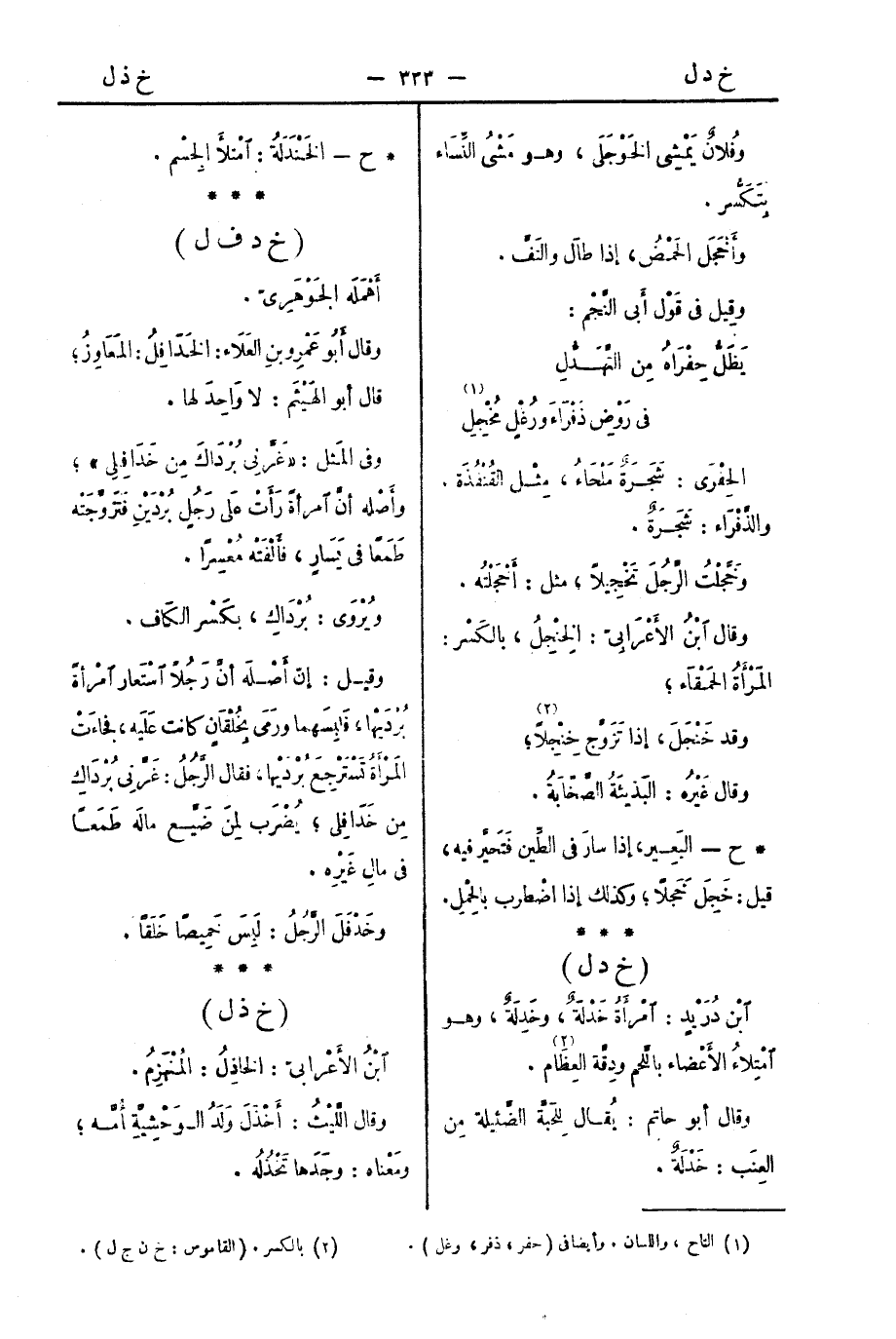 وقال أبو عَمْرِو بنُ العَلاءِ: الخَدَافِلُ: المَعَاوِزُ؛