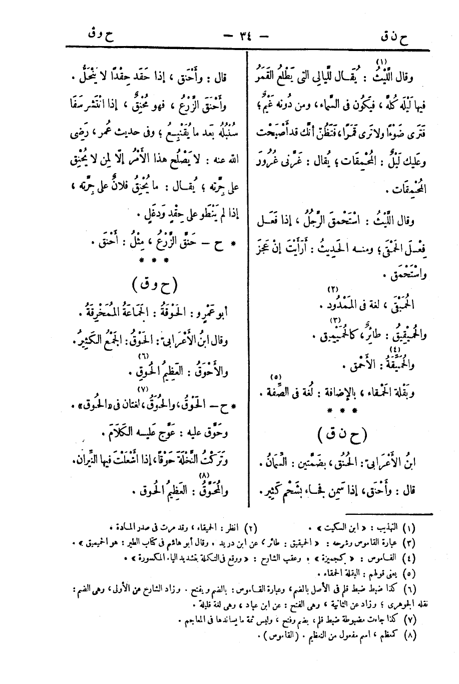 * ح - الحَوْقُ، والحُوَقُ، لغتانِ في " الحُوقِ ".