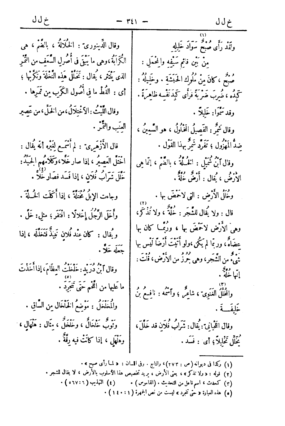 وقال اللَّيْثُ: الاخْتِلالُ، من الخَلِّ، من عَصِيرِ العِنَبِ والتَّمْرِ.