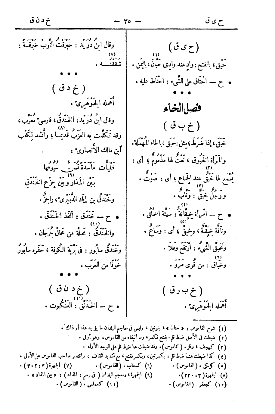 * ح - خَنْدَقَ: اتَّخَذَ الخَنْدَقَ.