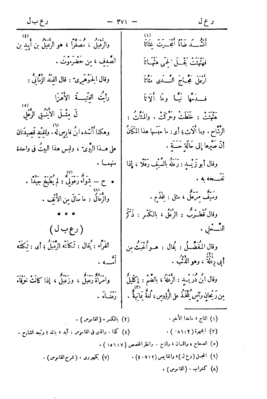 رَأَيْتُ الفِتْيَةَ الأَعْزَا ... لَ مِثْلَ الأَيْنُقِ الرُّعْلِ