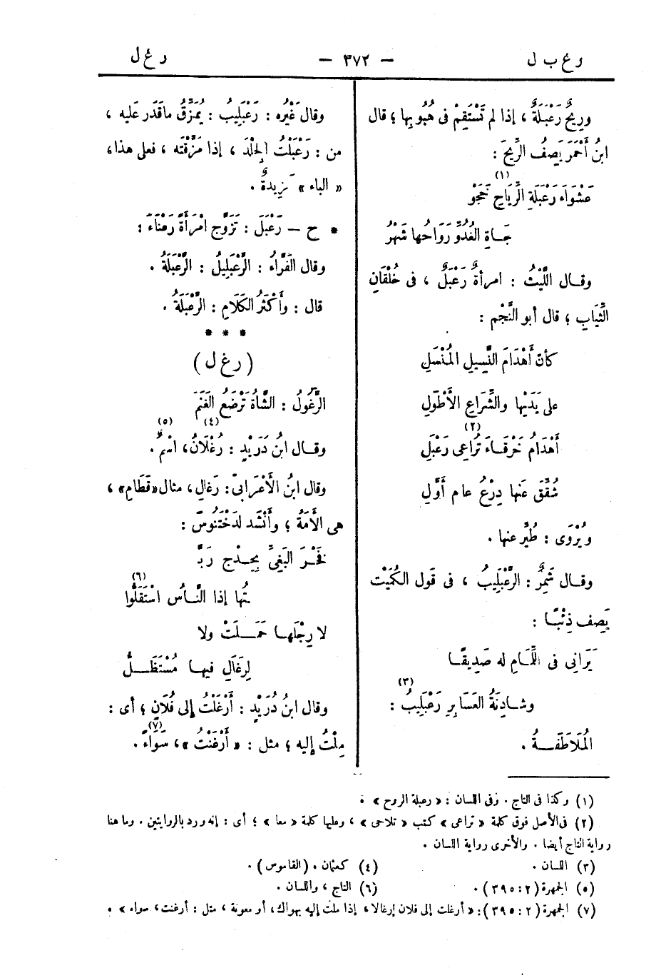 وقال ابنُ الأعرابيِّ: رَغَالِ، مثال " قَطَامِ "، هي الأَمَةُ؛ وأنشدَ لِدَخْتَنُوسَ: