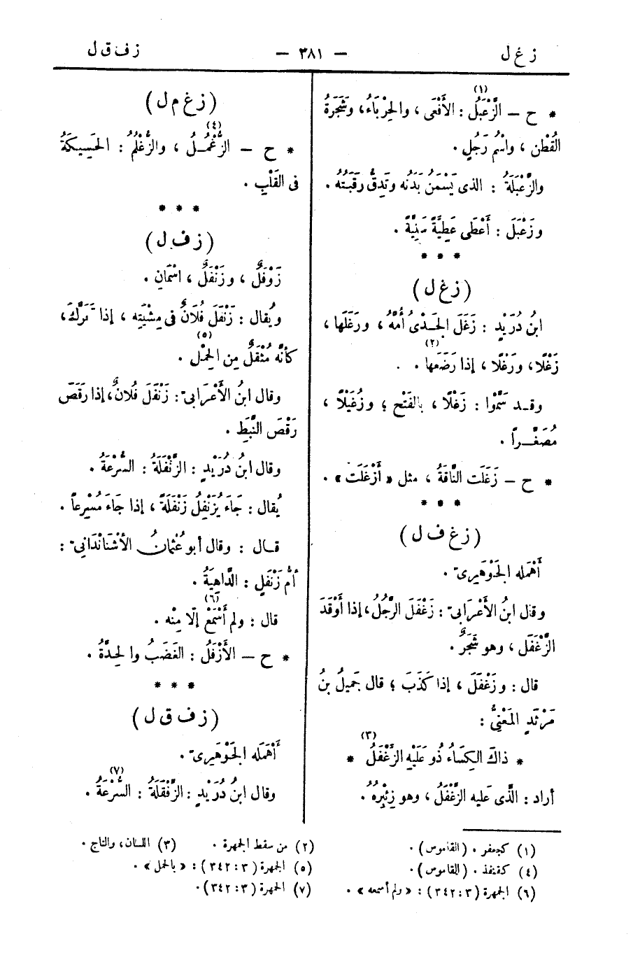 وقال ابنُ الأعرابيِّ: زَنْفَلَ فُلانٌ، إذا رَقَصَ رَقْصَ النَّبَطِ.