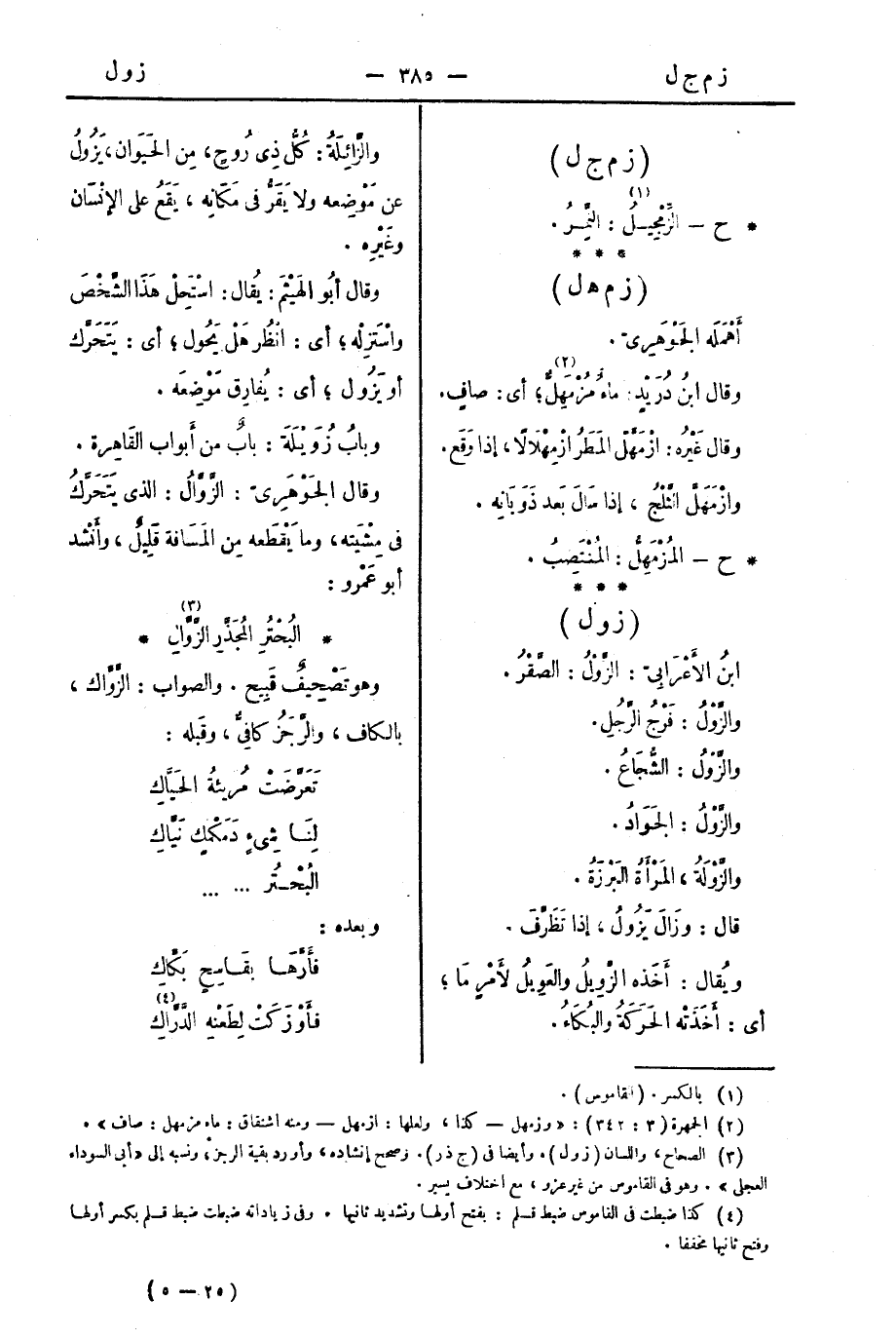والزَّائِلَةُ: كُلُّ ذِي رُوحٍ، مِنَ الحَيَوانِ، يَزُولُ عَنْ مَوْضِعِه ولا يَقَرُّ في مَكَانِه، يَقَعُ على الإنْسَانِ وغَيْرِه.