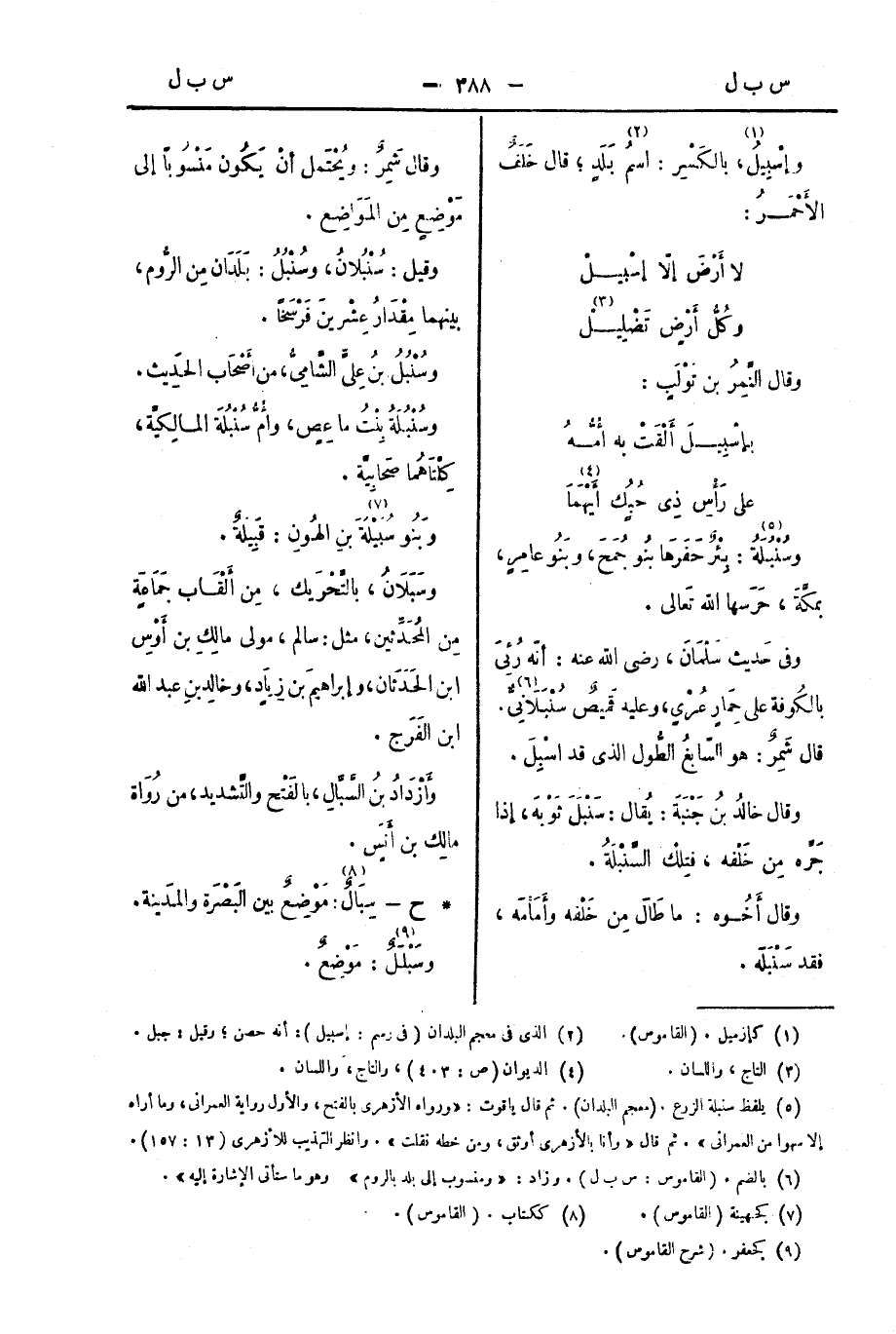 وإِسْبِيلُ، بالكسرِ: اسمُ بَلَدٍ؛ قال خَلَفٌ الأَحْمَرُ: