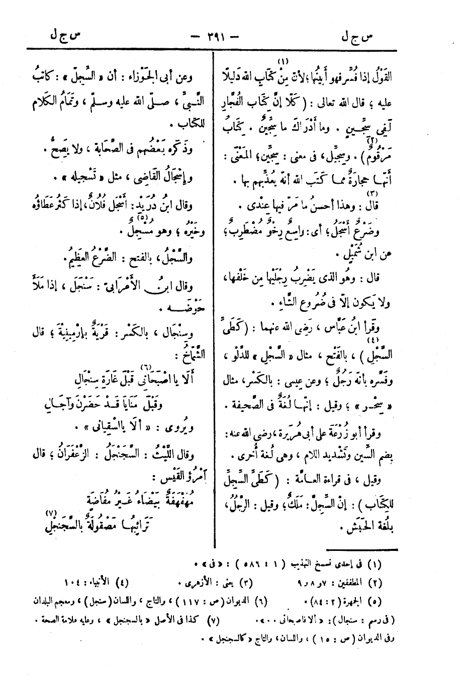 وعن أبي الجَوْزَاءِ: أَنَّ " السِّجِلَّ ": كَاتِبُ النَّبِيِّ، صلى الله عليه وسلم، وتَمَامُ الكَلامِ لِلْكِتَابِ.