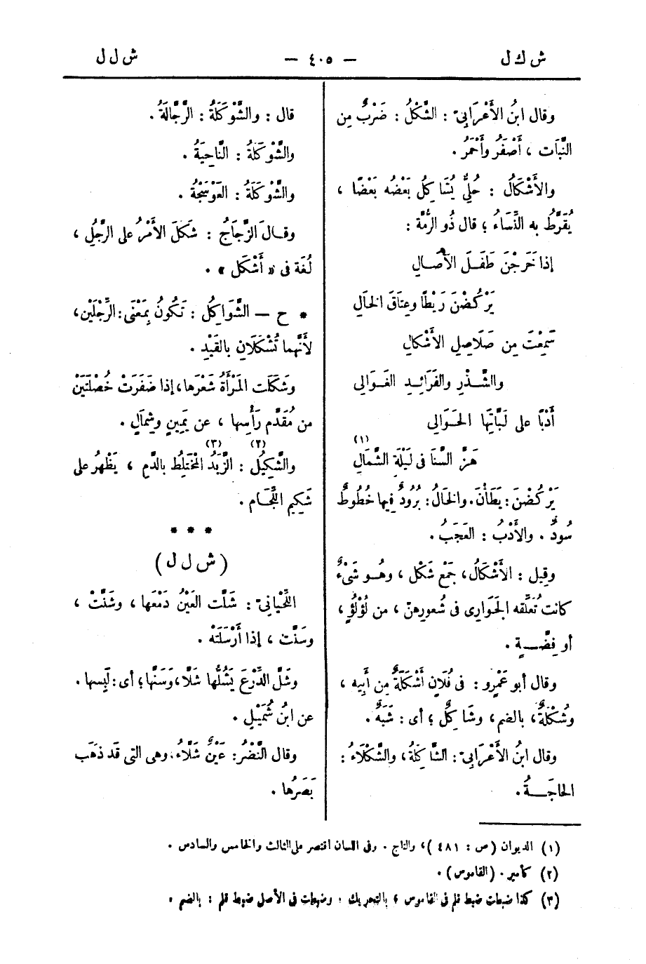 * ح - الشَّوَاكِلُ: تَكُونُ بِمَعْنَى: الرِّجْلَيْنِ، لِأَنَّهُما تُشْكَلانِ بالقَيْدِ.
