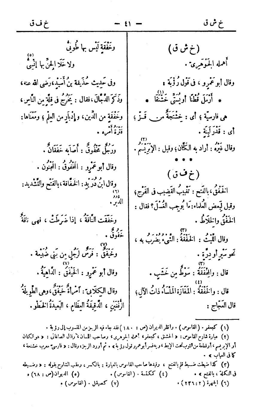 قال: والخَفْقَةُ: المَفَازَةُ المَلْسَاءُ ذاتُ الآلِ؛ قال العَجَّاجُ: