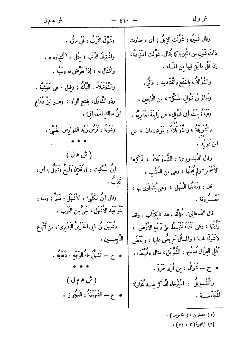 وقال غيرُه: شَوَّلَتِ الإِبِلُ؛ أي: صارتْ ذاتَ شَوْلٍ مِنَ اللَّبَنِ؛ كما يُقال: شَوَّلَتِ المَزَادَةُ، إذا قَلَّ ما بَقِيَ فيها مِنَ المَاءِ.