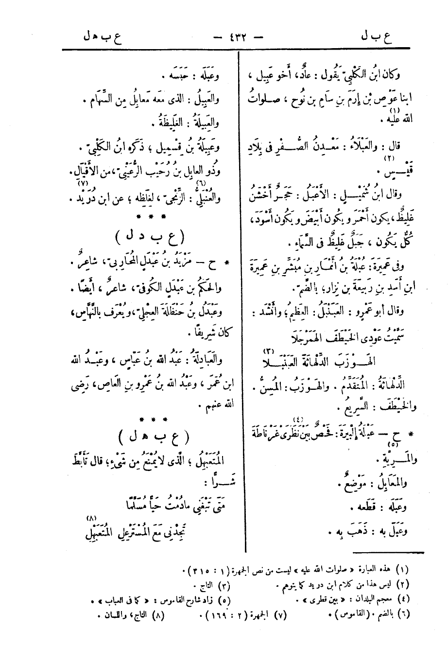 وكانَ ابنُ الكَلْبِيِّ يَقُولُ: عَادٌ، أَخُو عَبِيلٍ، ابْنَا عَوْصِ بنِ إِرَمَ بنِ سَامِ بنِ نُوحٍ، صَلَواتُ اللهِ عليه.