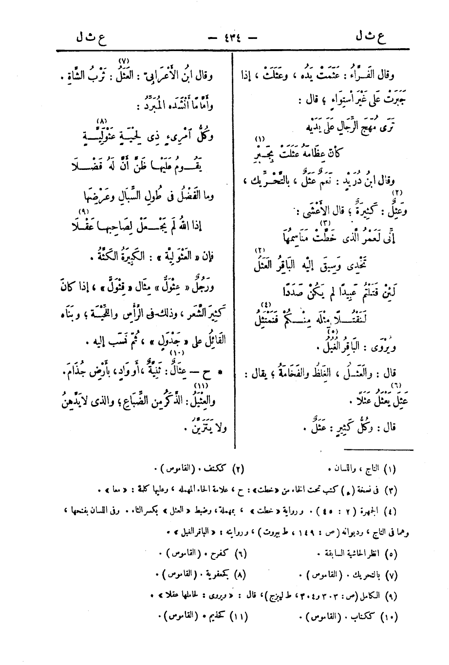 قال: والعَثَلُ، الغِلَظُ والفَخَامَةُ؛ يُقالُ: عَثِلَ يَعْثَلُ عَثَلًا.