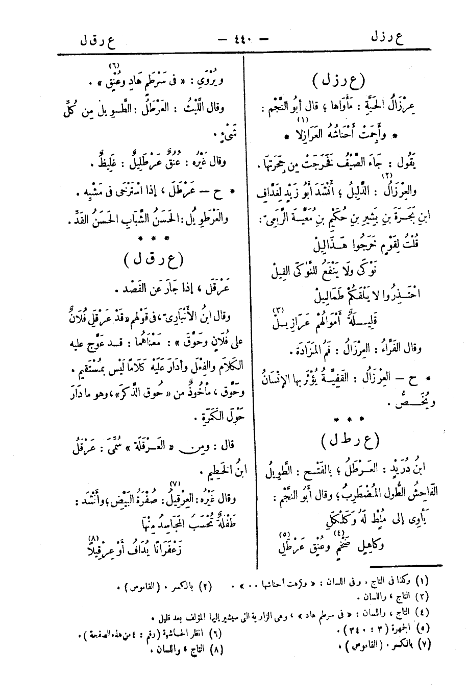 * ح - العِرْزَالُ: القَفِيَّةُ يُؤْثَرُ بها الإنْسَانُ ويُخَصُّ.