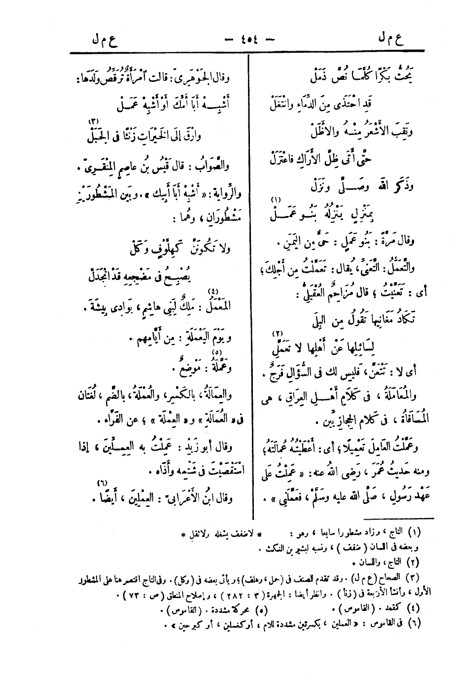 والتَّعَمُّلُ: التَّعَنِّي، يُقال: تَعَمَّلْتُ مِنْ أَجْلِكَ؛ أي: تَعَنَّيْتُ؛ قال مُزَاحِمٌ العُقَيْلِيُّ: