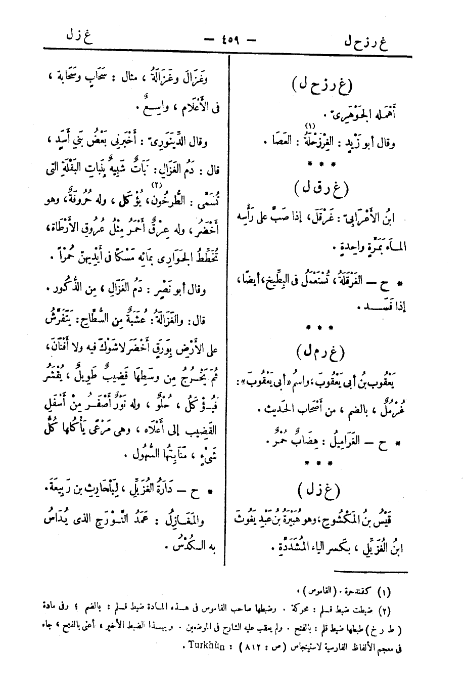 وقال أبو نَصْرٍ: دَمُ الغَزَالِ، مِنَ الذُّكُورِ.