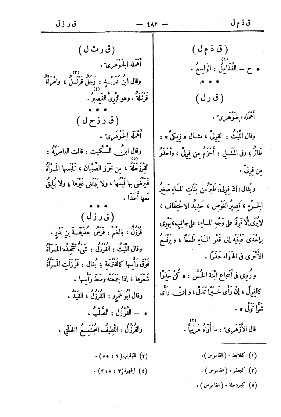 وقال أبو عَمْرٍو: القُرْزُلُ: القَيْدُ.