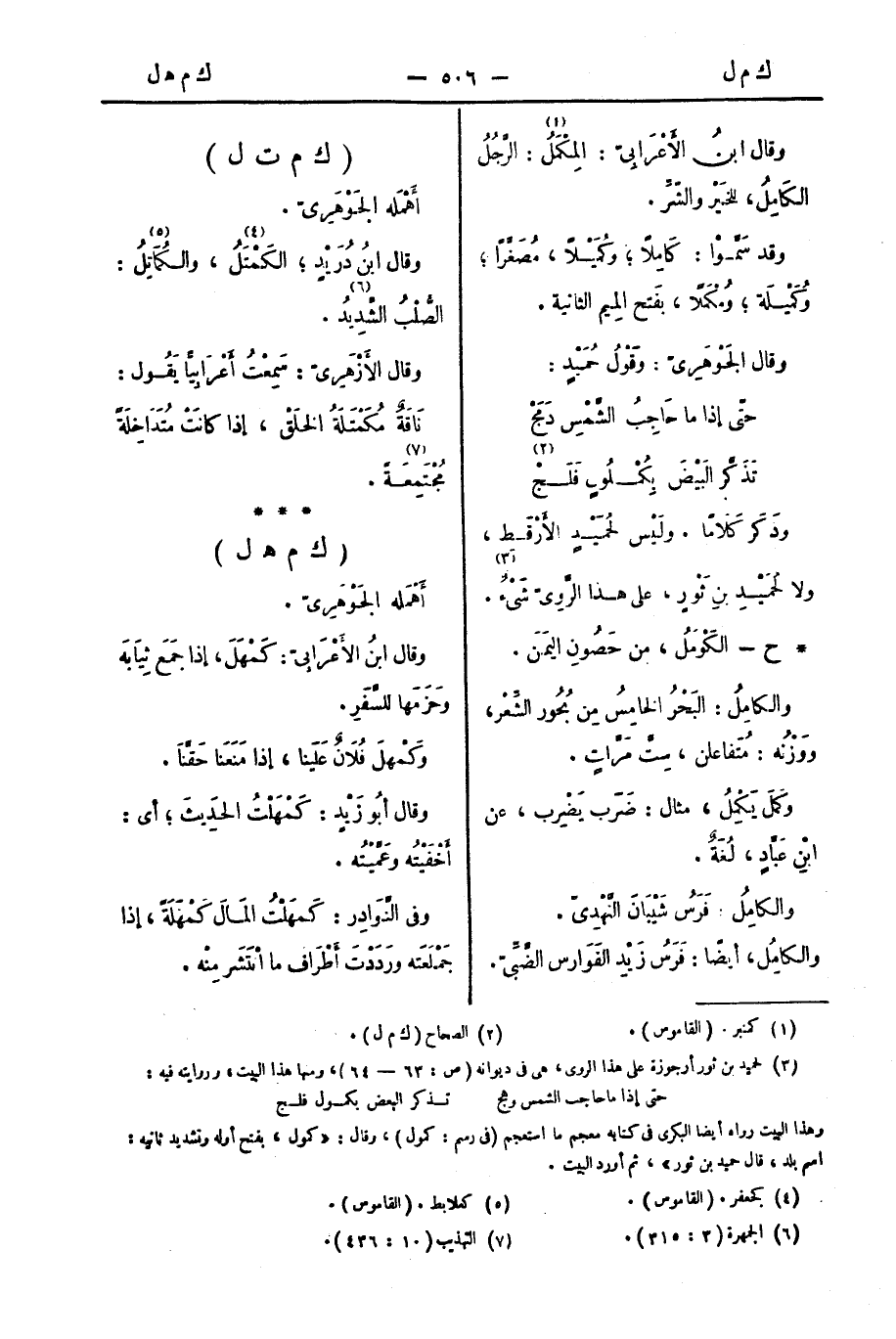 وقال الأزهريُّ: سَمِعْتُ أَعْرَابِيًّا يَقُولُ: نَاقَةٌ مُكَمْتَلَةُ الخَلْقِ، إذا كانَتْ مُتَدَاخِلَةً مُجْتَمِعَةً.
