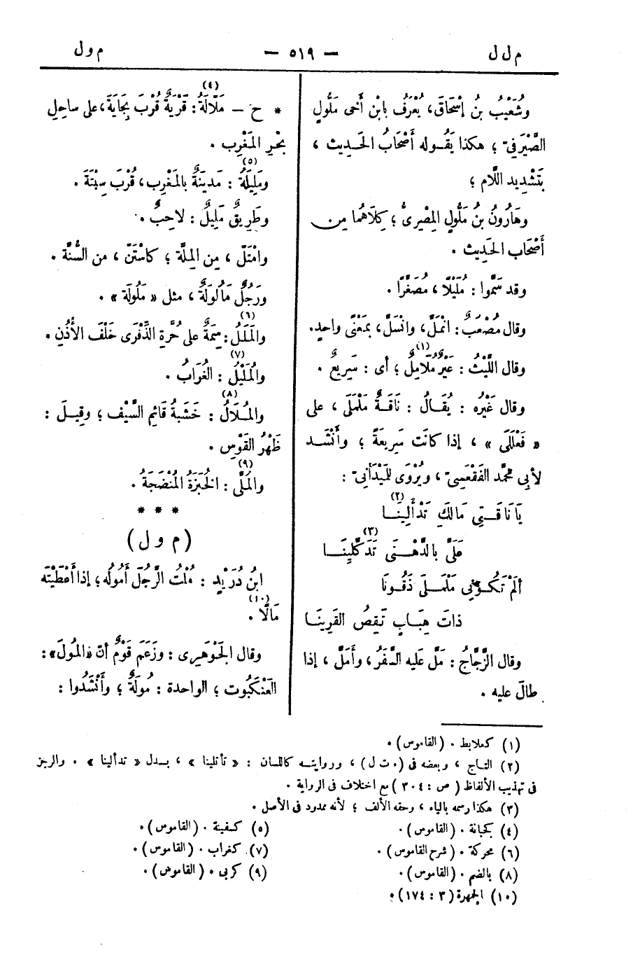 وقال اللَّيْثُ: عَيْرٌ مُلامِلٌ؛ أي: سَرِيعٌ.