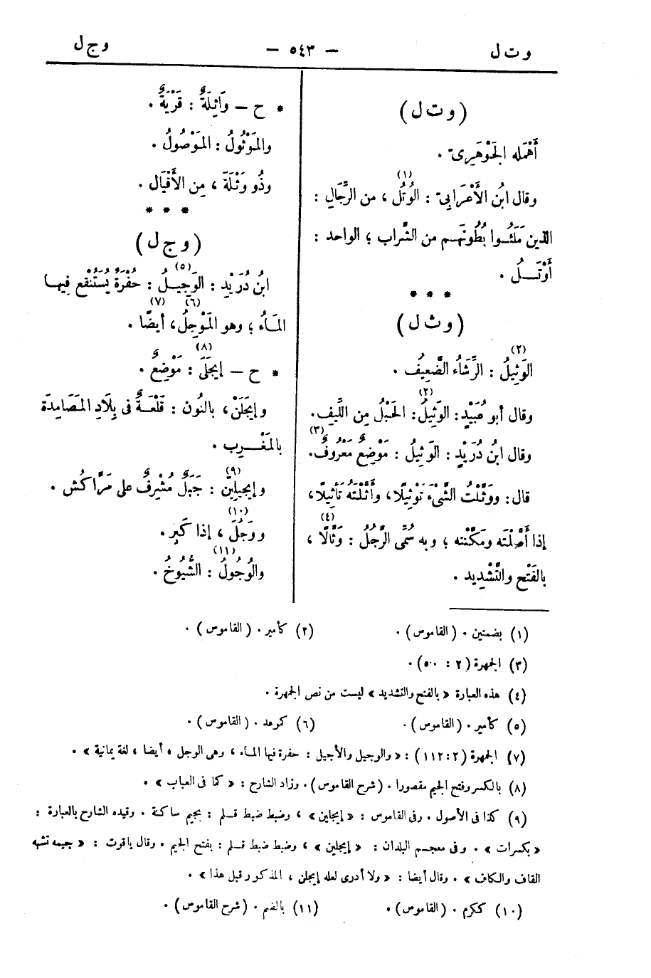 ابنُ دُرَيْدٍ: الوَجِيلُ: حُفْرَةٌ يُسْتَنْقَعُ فِيهَا الماءُ؛ وهو المَوْجِلُ، أَيْضًا.