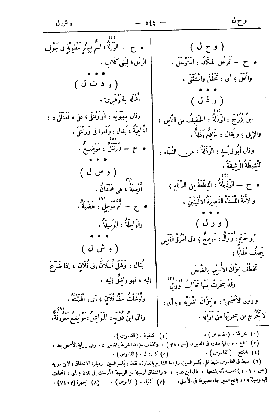 * ح - الوَذِيلَةُ: القِطْعَةُ مِنَ السَّنَامِ؛ والأَمَةُ اللَّسْنَاءُ القَصِيرَةُ الأَلْيَتَيْنِ.