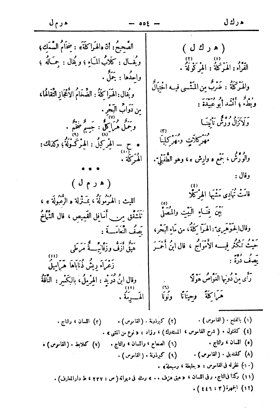 * ح - الهِرْكِيلُ: الهِرْكَوْلَةُ؛ وكذلك: الهُرَكِلَةُ.