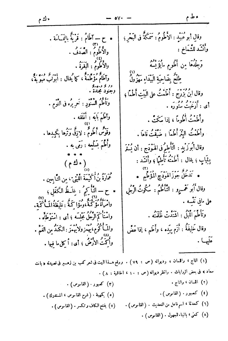 وقال أبو عُبَيْدٍ: الأَطُومُ: سَمَكَةٌ في البَحْرِ؛ وأنشدَ لِلشَّمَّاخِ:
