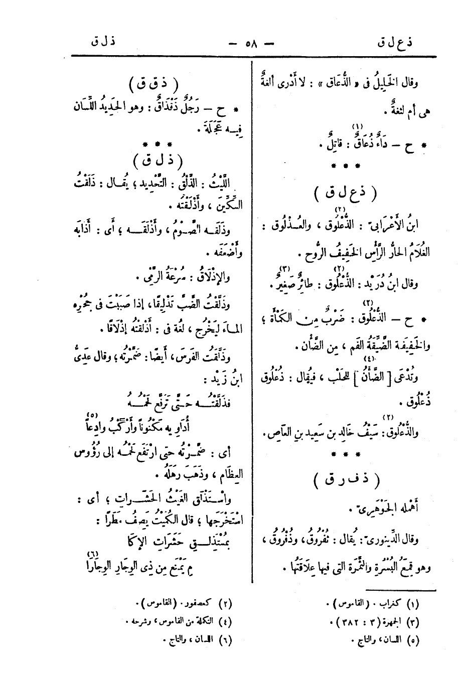 * ح - رَجُلٌ ذَقْذَاقٌ: وهو الحَدِيدُ اللِّسَانِ فِيه عَجَلَةٌ.