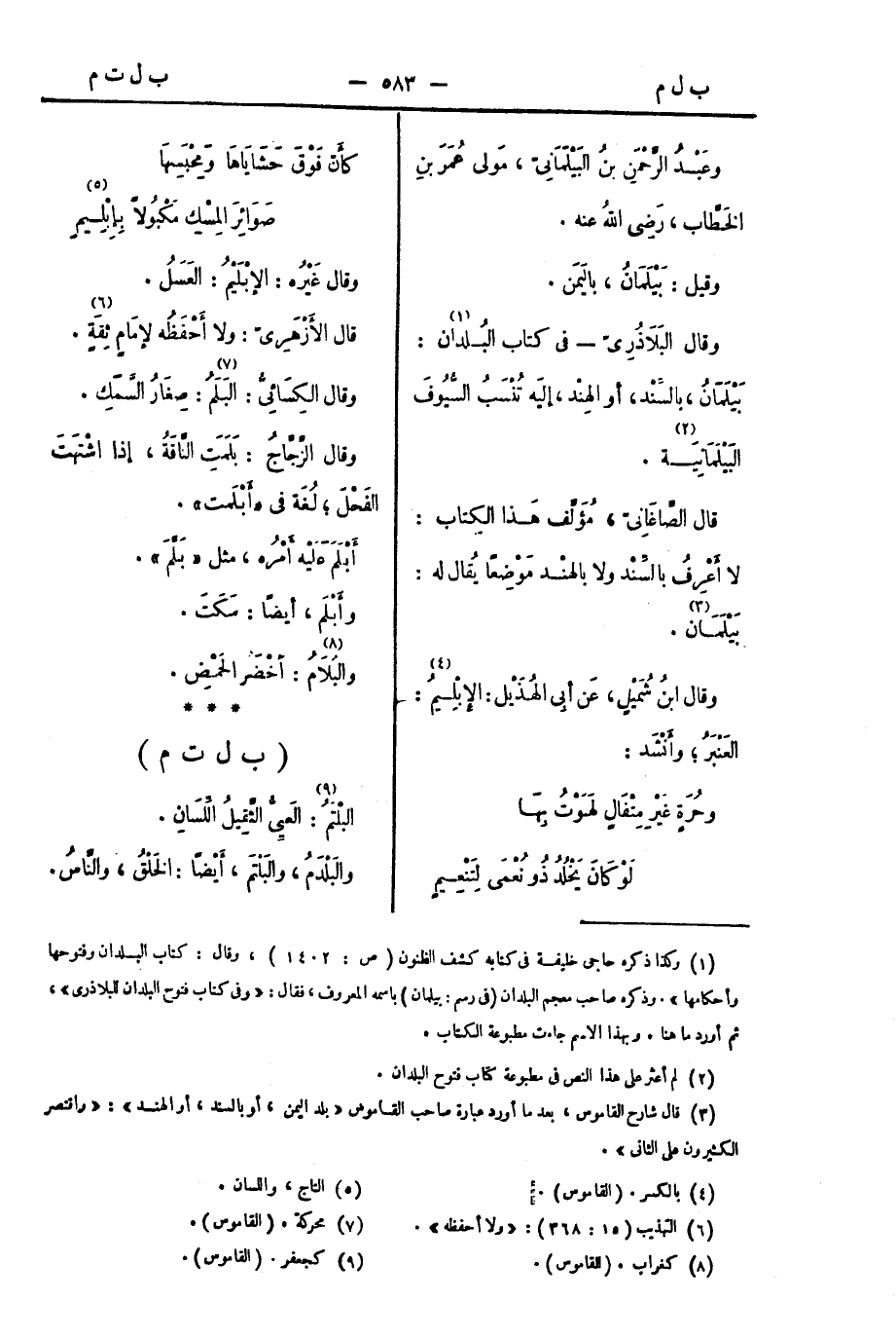 قال الصَّاغَانِيُّ، مُؤَلِّفُ هذا الكِتَابِ: لا أَعْرِفُ بِالسِّنْدِ ولا بِالهِنْدِ مَوْضِعًا يُقالُ لَهُ: بَيْلَمَانُ.