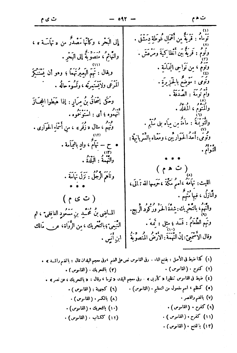 * ح - تِهَامٌ: وَادٍ باليَمَامَةِ.