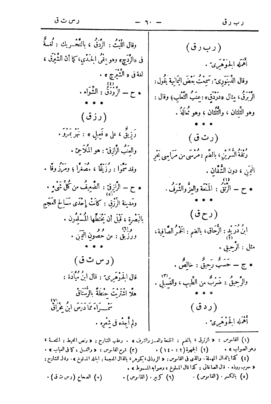 * ح - الرَّازِقِيُّ: الضَّعِيفُ من كُلِّ شَيْءٍ.