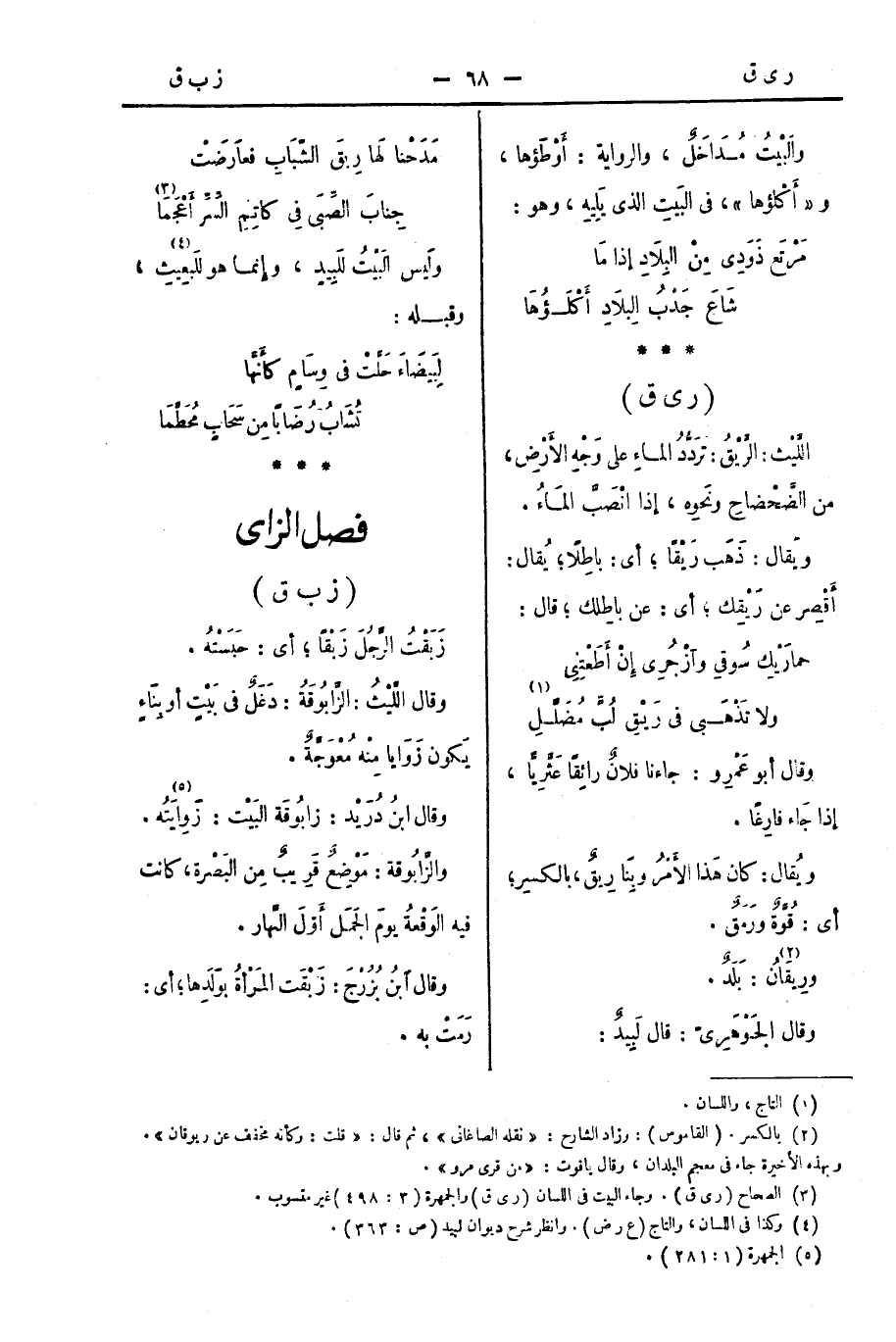 وقال اللَّيْثُ: الزَّابُوقَةُ: دَغَلٌ في بَيْتٍ أو بِنَاءٍ يَكونُ زَوَايا مِنْه مُعْوَجَّةٌ.