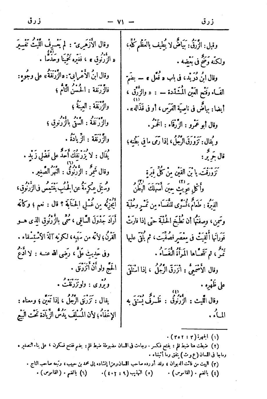 وقال الأزهريُّ: لم يَعْرِف اللّيْثُ تَفْسِيرَ " الزُّرْنُوقِ "، فغَيَّرَه تَخْمِينًا وحَدْسًا.