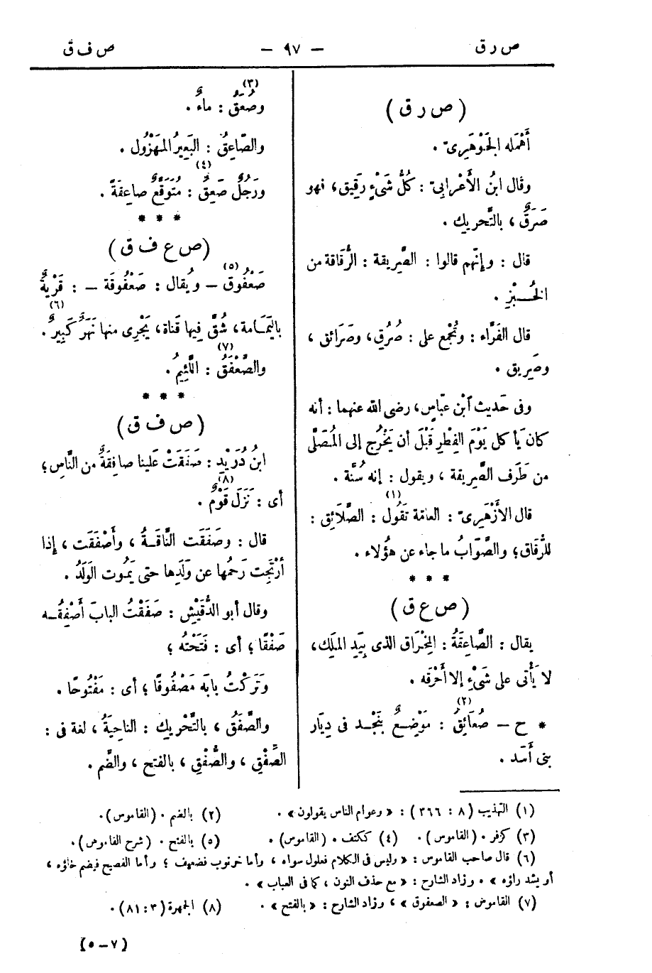 قال الأَزْهَرِيُّ: العامَّةُ تَقُولُ: الصَّلائِقُ: للرُّقَاقِ؛ والصَّوابُ ما جاءَ عن هؤلاء.