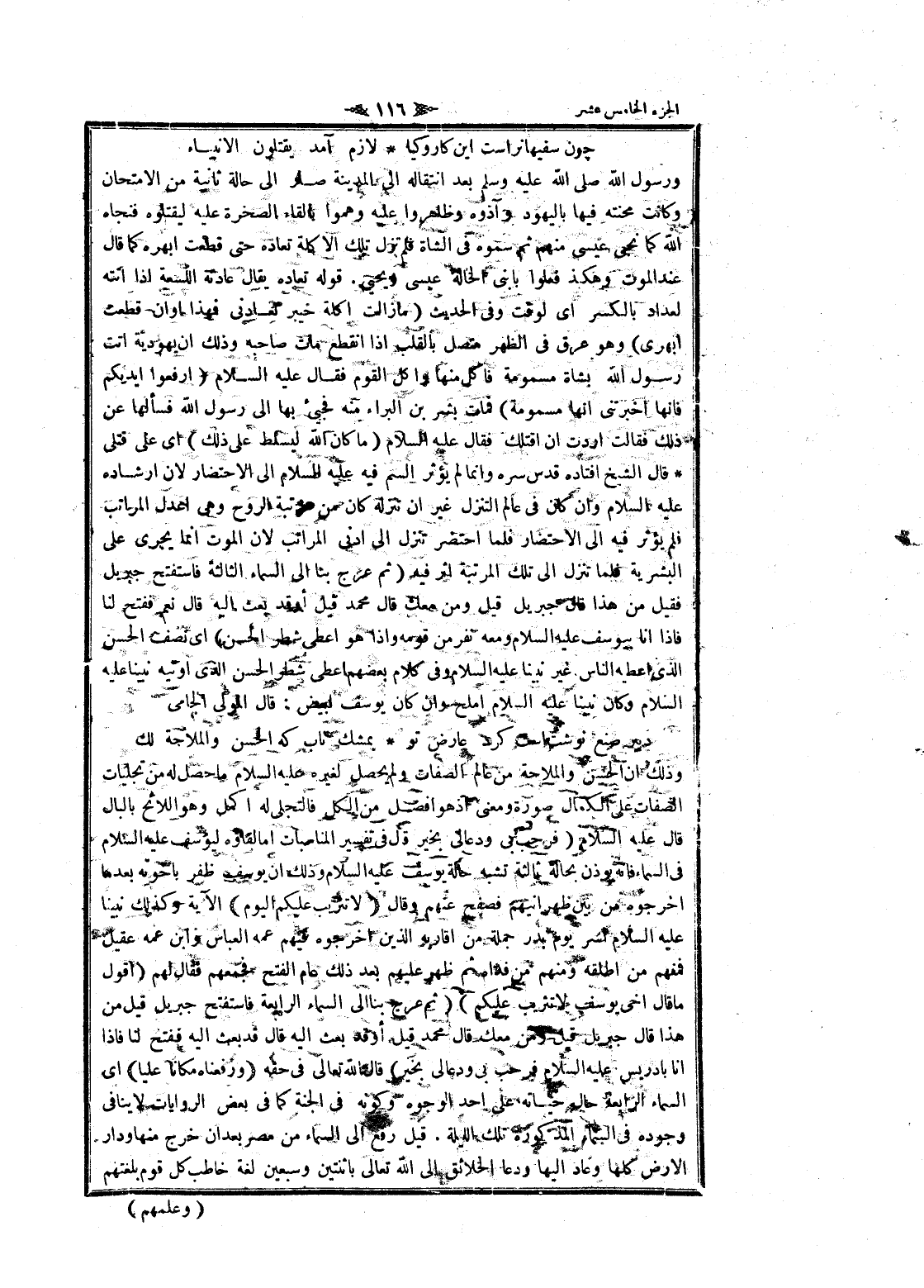 ورسول الله صلى الله عليه وسلم بعد انتقاله الى المدينة صار الى حالة ثانية من الامتحان وكانت محنته فيها باليهود وآذوه وظاهروا عليه وهموا بإلقاء الصخرة عليه ليقتلوه فنجاه الله كما نجى عيسى منهم ثم سموه فى الشاة فلم تزل تلك الاكلة تعاده حتى قطعت أبهره كما قال عند الموت وهكذا فعلوا بابني الخالة عيسى ويحيى. قوله تعاده يقال عادته اللسعة إذا أتته لعداد بالكسر اى لوقت وفى الحديث (ما زالت أكلة خيبر تعادنى فهذا أوان قطعت أبهري) وهو عرق فى الظهر متصل بالقلب إذا انقطع مات صاحبه وذلك ان يهودية أتت رسول الله بشاة مسمومة فاكل منها وأكل القوم فقال عليه السلام (ارفعوا ايديكم فانها أخبرتني انها مسمومة) فمات بشر بن البراء منه فجيئ بها الى رسول الله فسألها عن ذلك فقالت أردت ان أقتلك فقال عليه السلام (ما كان الله ليسلط على ذلك) اى على قتلى قال الشيخ افتاده قدس سره وانما لم يؤثر السم فيه عليه السلام الى الاحتضار لان إرشاده عليه السلام وان كان فى عالم التنزل غير ان تنزله كان من مرتبة الروح وهى اعدل المراتب فلم يؤثر فيه الى الاحتضار فلما احتضر تنزل الى ادنى المراتب لان الموت انما يجرى على البشرية فلما تنزل الى تلك المرتبة اثر فيه (ثم عرج بنا الى السماء الثالثة فاستفتح جبريل فقيل من هذا قال جبريل قيل ومن معك قال محمد قيل أوقد بعث اليه قال نعم ففتح لنا فاذا انا بيوسف عليه السلام ومعه نفر من قومه وإذا هو اعطى شطر الحسن) اى نصف الحسن الذي أعطيه الناس غير نبينا عليه السلام وفى كلام بعضهم اعطى شطر الحسن الذي أوتيه نبينا عليه السلام وكان نبينا عليه السلام أملح وان كان يوسف ابيض: قال المولى الجامى