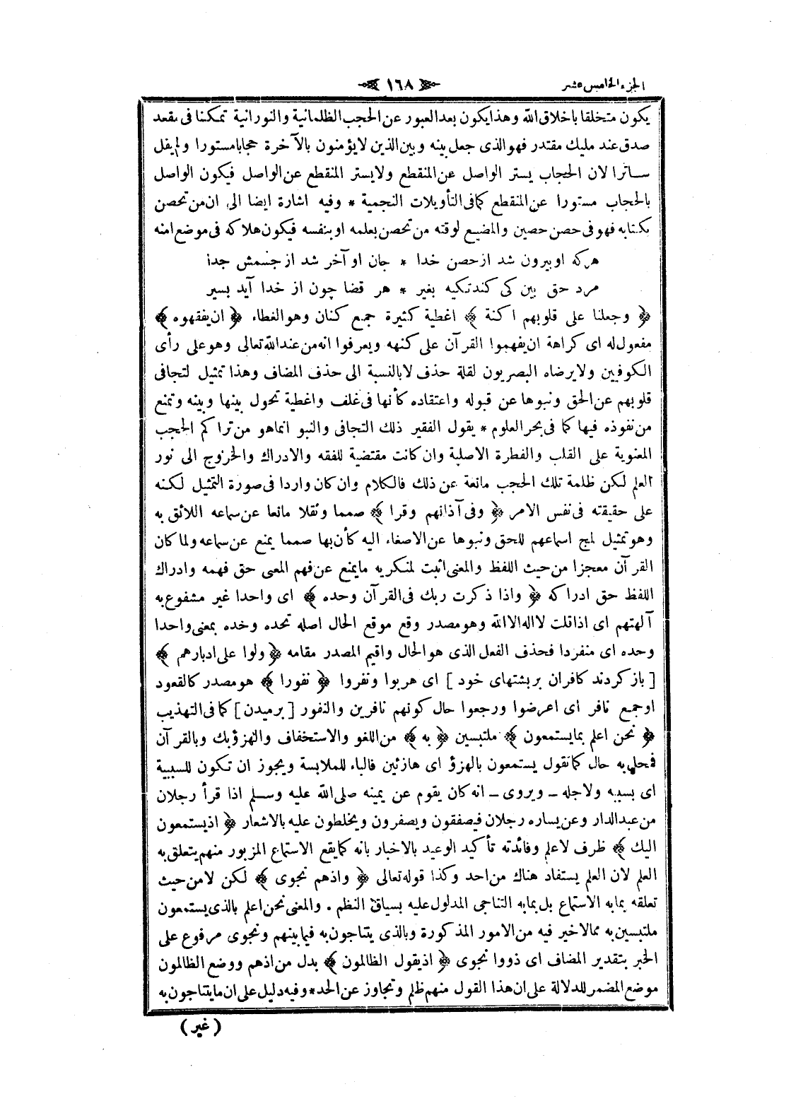 يكون متخلقا بأخلاق الله وهذا يكون بعد العبور عن الحجب الظلمانية والنورانية تمكنا فى مقعد صدق عند مليك مقتدر فهو الذي جعل بينه وبين الذين لا يؤمنون بالآخرة حجابا مستورا ولم يقل ساترا لان الحجاب يستر الواصل عن المنقطع ولا يستر المنقطع عن الواصل فيكون الواصل بالحجاب مستورا عن المنقطع كافى التأويلات النجمية وفيه اشارة ايضا الى ان من تحصن بكتابه فهو فى حصن حصين والمضيع لوقته من تحصن بعلمه او بنفسه فيكون هلاكه فى موضع امنه