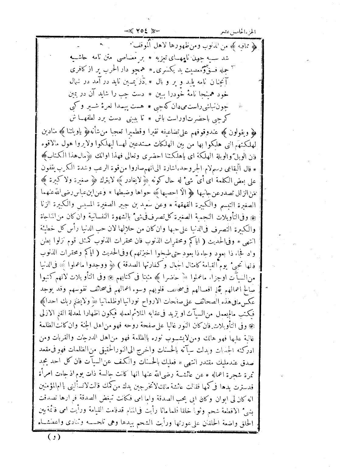 وَيَقُولُونَ عند وقوفهم على تضاعيفه نقيرا وقطميرا تعجبا من شأنه يا وَيْلَتَنا منادين لهلكتهم التي هلكوا بها من بين الهلكات مستدعين لها ليهلكوا ولا يروا هول ما لا قوه فان الويل والويلة الهلكة اى يا هلكتنا احضرى وتعالى فهذا أوانك مالِ هذَا الْكِتابِ قال البقاعي رسم لام الجر وحده اشارة الى انهم صاروا من قوة الرعب وشدة الكرب يقفون على بعض الكلمة اى أىّ شىء له حال كونه لا يُغادِرُ لا يترك صَغِيرَةً وَلا كَبِيرَةً من الزلل تصدر عن جانيها إِلَّا أَحْصاها حواها وضبطها وعن ابن عباس رضى الله عنهما الصغيرة التبسم والكبيرة القهقهة وعن سعيد بن جبير الصغيرة المسيس والكبيرة الزنا وفى التأويلات النجمية الصغيرة كل تصرف فى شىء بالشهوة النفسانية وان كان من المناجاة والكبيرة التصرف فى الدنيا على حبها وان كان من حلالها لان حب الدنيا رأس كل خطيئة انتهى وفى الحديث (إياكم ومحقرات الذنوب فان محقرات الذنوب كمثل قوم نزلوا بطن واد فجاء ذا بعود وجاء ذا بعود حتى طبخوا اخبزتهم) وفى الحديث (إياكم ومحقرات الذنوب فانها تجيئ يوم القيامة كامثال الجبال وكفارتها الصدقة) وَوَجَدُوا ما عَمِلُوا فى الدنيا من السيئات او جزاء ما عملوا حاضِراً مثبتا فى كتابهم وفى التأويلات لانهم كتبوا صالح أعمالهم بقلم أفعالهم فى صحائف قلوبهم وسوء أعمالهم فى صحائف نفوسهم وقد يوجد عكس ما فى هذه الصحائف على صفحات الأرواح نورانيا او ظلمانيا وَلا يَظْلِمُ رَبُّكَ أَحَداً فيكتب ما لم يعمل من السيئات او يزيد فى عقابه الملائم لعمله فيكون إظهارا لمعدلة القلم الأزلي وفى التأويلات فان كان النور غالبا على صفحة روحه فهو من اهل الجنة وان كانت الظلمة غالبة عليها فهو هالك ومن لا يشوب نوره بالظلمة فهو من اهل الدرجات والقربات ومن أدركته الجذبات وبدلت سيآته بالحسنات واخرج الى النور الحقيقي من الظلمات فهو فى مقعد صدق عند مليك مقتدر انتهى فعليك بالحسنات والكف عن السيئات فان كل أحد يجد ثمرة شجرة اعماله عن عائشة رضى الله عنها انها كانت جالسة ذات يوم إذ جاءت امرأة قد سترت يدها فى كمها فقالت عائشة مالك لا تخرجين يدك من كمك قالت لا تسألينى يا أم المؤمنين انه كان لى أبوان وكان ابى يحب الصدقة واما أمي فكانت تبغض الصدقة فلم ارها تصدقت بشئ إلا قطعة شحم وثوبا خلقا فلما ماتا رأيت فى المنام قد قامت القيامة ورأيت أمي قائمة بين الخلق واضعة الخلقان على عورتها ورأيت الشحم بيدها وهى تلحسه وتنادى واعطشاه