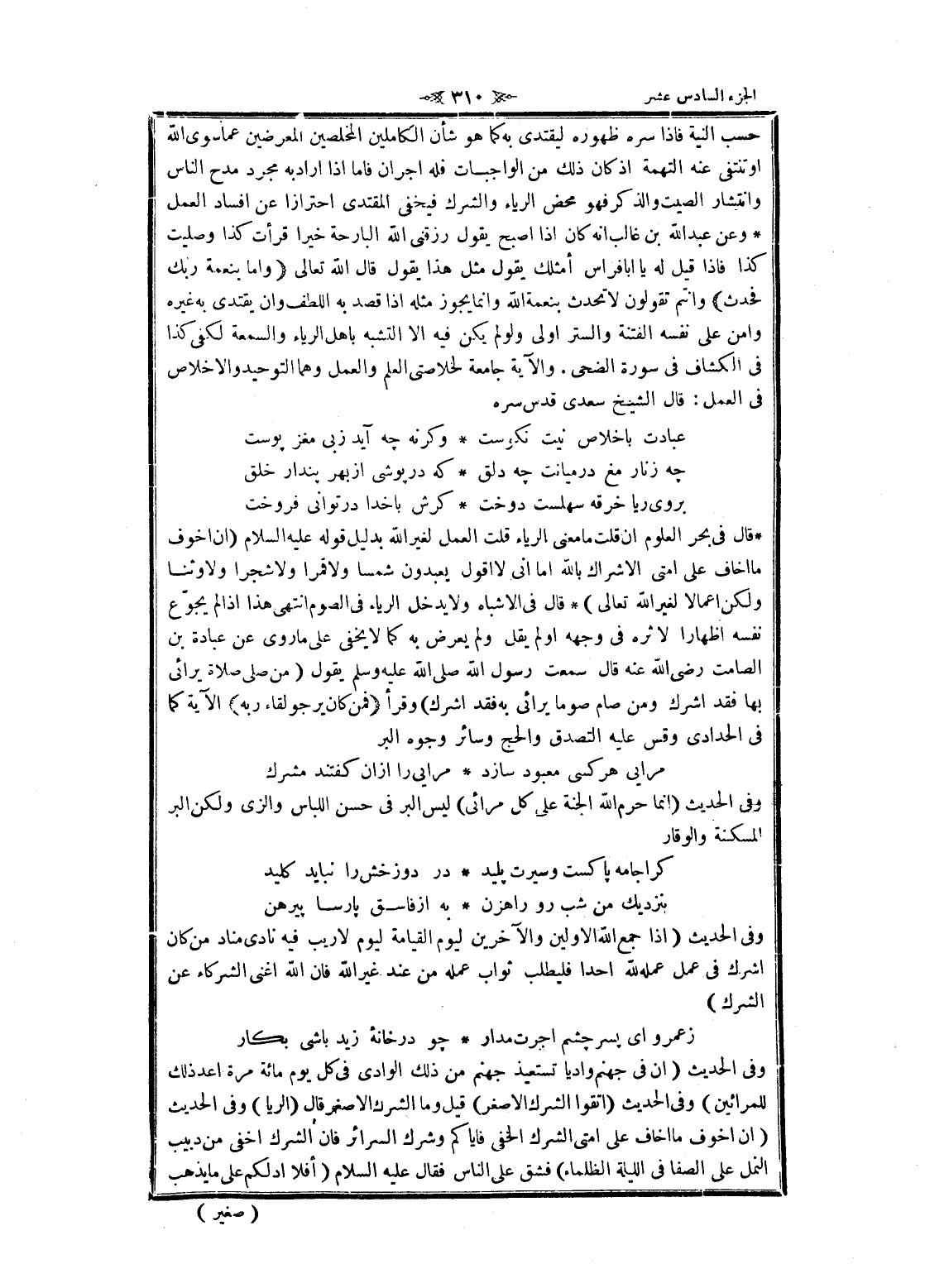 والعمل وهما التوحيد والإخلاص فى العمل: قال الشيخ سعدى قدس سره