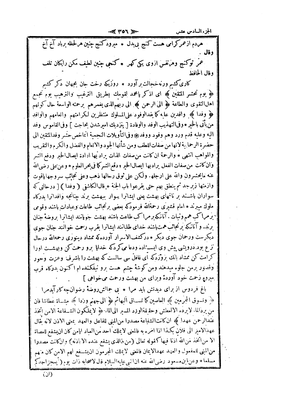 يَوْمَ نَحْشُرُ الْمُتَّقِينَ اى اذكر يا محمد لقومك بطريق الترغيب والترهيب يوم نجمع اهل التقوى والطاعة إِلَى الرَّحْمنِ الى ربهم الذي يغمرهم برحمته الواسعة حال كونهم وَفْداً وافدين عليه كما يفد الوفود على الملوك منتظرين لكرامتهم وإنعامهم والوافد من يأتى بالخير وفى التهذيب الوفد والوفادة [بنزديك امير شدن بحاجت] وفى القاموس وفد اليه وعليه قدم ورد وهم وفود ووفد وفى التأويلات النجمية انما خص حشر وفد المتقين الى حضرة الرحمانية لانها من صفات اللطف ومن شأنها الجود والانعام والفضل والكرم والتقريب والمواهب انتهى والرحمة ان كانت من صفات الذات يراد بها ارادة إيصال الخير ودفع الشر وان كانت من صفات الفعل يراد بها إيصال الخير ودفع الشر كما فى بحر العلوم وعن على رضى الله عنه ما يحشرون والله على أرجلهم ولكن على نوق رحالها ذهب وعلى نجائب سروجها ياقوت وأزمتها زبر جد ثم ينطق بهم حتى يقرعوا باب الجنة قال الكاشفى وَفْداً [در حالتى كه سواران باشند بر ناقهاى بهشت يعنى ايشانرا سوار ببهشت برند چنانچهـ وافدان را بدرگاه ملوك ميبرند امام قشيرى رحمة الله فرمود كه بعضى بر نجائب طاعات وعبادات باشند وقومى بر مراكب همم ونيات. آنانكه بر مراكب طاعت باشند بهشت جويانند ايشانرا بروضه جنان برند. وآنانكه بر نجائب همت باشند خداى طلبانند ايشانرا بقرب رحمت خوانند جنان جوى ديكرست ورحمان جوى ديكر در كشف الاسرار آورده كه ممشاد دينورى رحمه الله در حال نزع بود درويشى پيش وى ايستاده ودعا مى كرد كه خدايا برو رحمت كن وبهشت او را كرامت كن ممشاد بانك بروزد كه اى غافل سى سالست كه بهشت را با شرف وعزت وحور وقصور بر من جلوه ميدهند ومن كوشه چشم هست برو نيفكنده ام اكنون بدرگاه قرب ميروم زحمت خود آورده وبراى من بهشت ورحمت مى خواهى]