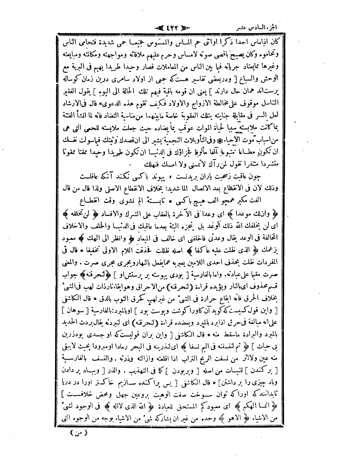 وَإِنَّ لَكَ مَوْعِداً اى وعدا فى الآخرة بالعقاب على الشرك والإفساد لَنْ تُخْلَفَهُ اى لن يخلفك الله ذلك الوعد بل ينجزه البتة بعد ما عاقبك فى الدنيا والخلف والأخلاف المخالفة فى الوعد يقال وعدني فاخلفنى اى خالف فى الميعاد وَانْظُرْ إِلى إِلهِكَ معبود بزعمك الَّذِي ظَلْتَ عَلَيْهِ عاكِفاً أصله ظللت فحذفت اللام الاولى تخفيفا قال فى المفردات ظلت بحذف احدى اللامين يعبربه عما يفعل بالنهار ويجرى مجرى صرت. والمعنى صرت مقيما على عبادته. واما بالفارسية [بودى پيوسته بر پرستش او] لَنُحَرِّقَنَّهُ جواب قسم محذوف اى بالنار ويؤيده قراءة لَنُحَرِّقَنَّهُ من الإحراق وهو ايقاء نار ذات لهب فى الشيء بخلاف الحرق فانه إيقاع حرارة فى الشيء من غير لهب كحرق الثوب بالدق قال الكاشفى [واين قول كسيست كه كويد آن كاو را كوشت و پوست بود] او بالمبرد: بالفارسية [سوهان] على انه مبالغة فى حرق إذا برد بالمبرد ويعضده قراءة لَنُحَرِّقَنَّهُ اى لنبردنه يقال بردت الحديد بالمبرد والبرادة ما سقط منه قال الكاشفى [واين بران قوليست كه او جسدى بود زرين بي حيات] ثُمَّ لَنَنْسِفَنَّهُ فِي الْيَمِّ نَسْفاً اى لنذرينه فى البحر رمادا او مبرودا بحيث لا يبقى منه عين ولا اثر من نسفت الريح التراب إذا أقلعته وأزالته وذرته. والنسف بالفارسية [بر كندن] للنبات من أصله [وبر بودن] كما فى التهذيب. والذر [وبباد بر دادن وباد چيزى را بر داشتن] قال الكاشفى [پس پراكنده سازيم خاكستر او را در دريا تا بدانند كه او را كه توان سوخت صفت الوهيت برو عين جهل ومحض خلافست] إِنَّما إِلهُكُمُ اى معبود كم المستحق للعبادة اللَّهُ الَّذِي لا إِلهَ فى الوجود لشئ من الأشياء إِلَّا هُوَ وحده من غير ان يشاركه شىء من الأشياء بوجه من الوجوه التي