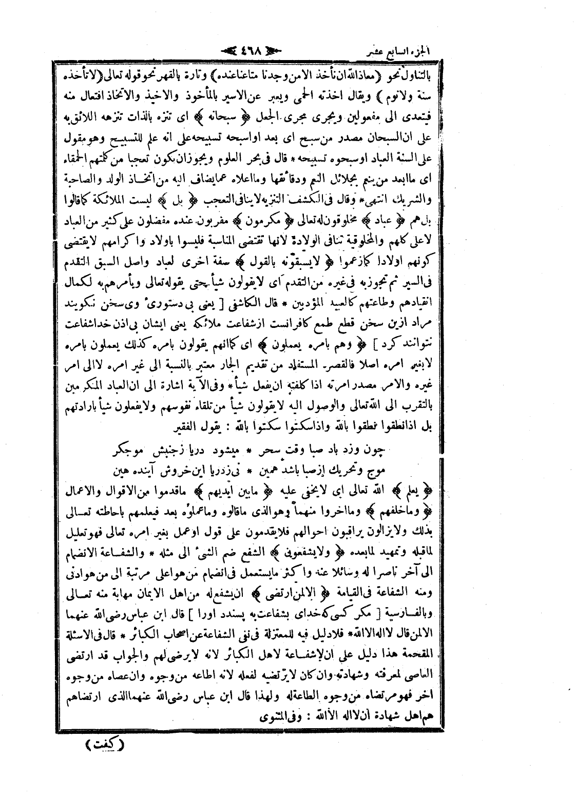 بالتناول نحو مَعاذَ اللَّهِ أَنْ نَأْخُذَ إِلَّا مَنْ وَجَدْنا مَتاعَنا عِنْدَهُ وتارة بالقهر نحو قوله تعالى لا تَأْخُذُهُ سِنَةٌ وَلا نَوْمٌ ويقال أخذته الحمى ويعبر عن الأسير بالمأخوذ والأخيذ والاتخاذ افتعال منه فيتعدى الى مفعولين ويجرى مجرى الجعل سُبْحانَهُ اى تنزه بالذات تنزهه اللائق به على ان السبحان مصدر من سبح اى بعد او أسبحه تسبيحه على انه علم للتسبيح وهو مقول على السنة العباد او سبحوه تسبيحه قال فى بحر العلوم ويجوز ان تكون تعجبا من كلمتهم الحمقاء اى ما ابعد من ينعم بجلائل النعم ودقائقها وما أعلاه عما يضاف اليه من اتخاذ الولد والصاحبة والشريك انتهى وقال فى الكشف التنزيه لا ينافى التعجب بَلْ ليست الملائكة كما قالوا بل هم عِبادٌ مخلوقون له تعالى مُكْرَمُونَ مفربون عنده مفضلون على كثير من العباد لا على كلهم والمخلوقية تنافى الولادة لانها تقتضى المناسبة فليسوا باولاد وإكرامهم لا يقتضى كونهم أولادا كما زعموا لا يَسْبِقُونَهُ بِالْقَوْلِ صفة اخرى لعباد واصل السبق التقدم فى السير ثم تجوز به فى غيره من التقدم اى لا يقولون شيأ حتى يقوله تعالى ويأمرهم به لكمال انقيادهم وطاعتهم كالعبيد المؤدبين قال الكاشفى [يعنى بي دستورئ وى سخن نكويند مراد ازين سخن قطع طمع كافرانست از شفاعت ملائكه يعنى ايشان بي اذن خدا شفاعت نتوانند كرد] وَهُمْ بِأَمْرِهِ يَعْمَلُونَ اى كما انهم يقولون بامره كذلك يعملون بامره لا بغير امره أصلا فالقصر المستفاد من تقديم الجار معتبر بالنسبة الى غير امره لا الى امر غيره والأمر مصدر أمرته إذا كلفته ان يفعل شيأ وفى الآية اشارة الى ان العباد المكرمين بالتقرب الى الله تعالى والوصول اليه لا يقولون شيأ من تلقاء نفوسهم ولا يفعلون شيأ بإرادتهم بل إذا نطقوا نطقوا بالله وإذا سكتوا سكتوا بالله: يقول الفقير