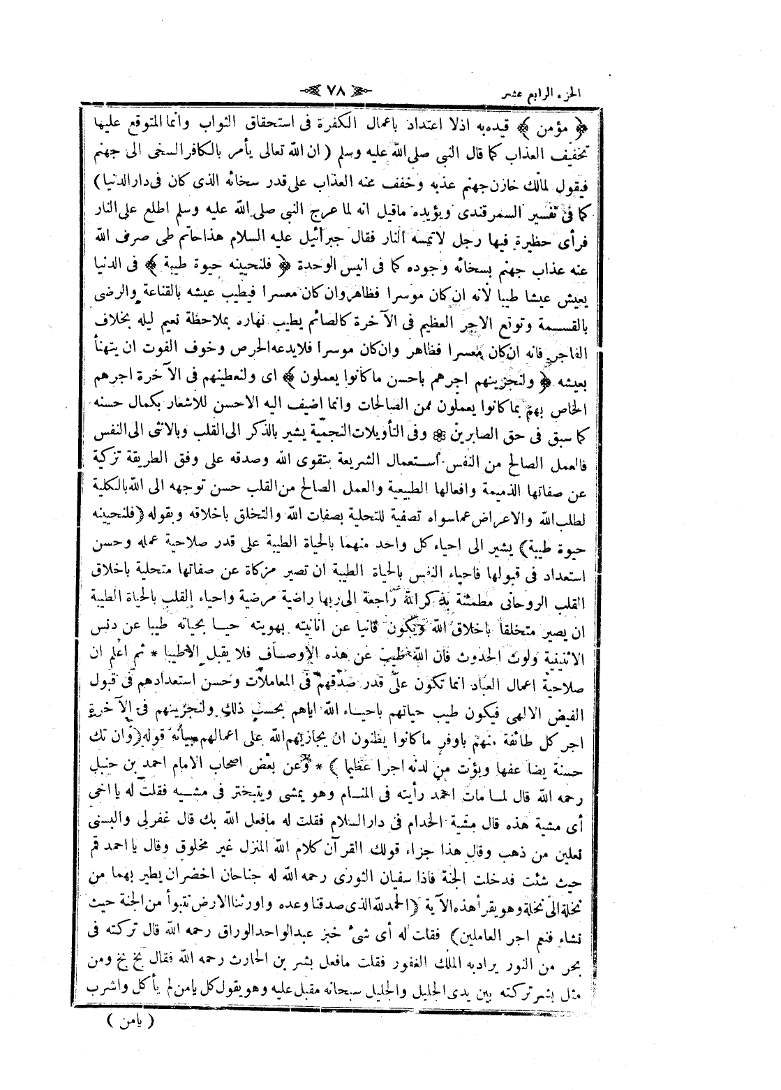 مُؤْمِنٌ قيده به إذ لا اعتداد باعمال الكفرة فى استحقاق الثواب وانما المتوقع عليها تخفيف العذاب كما قال النبي صلى الله عليه وسلم (ان الله تعالى يأمر بالكافر السخي الى جهنم فيقول لمالك خازن جهنم عذبه وخفف عنه العذاب على قدر سخائه الذي كان فى دار الدنيا) كما فى تفسير السمرقندي ويؤيده ما قيل انه لما عرج النبي صلى الله عليه وسلم اطلع على النار فرأى حظيرة فيها رجل لا تمسه النار فقال جبرائيل عليه السلام هذا حاتم طى صرف الله عنه عذاب جهنم بسخائه وجوده كما فى أنيس الوحدة فَلَنُحْيِيَنَّهُ حَياةً طَيِّبَةً فى الدنيا يعيش عيشا طيبا لانه ان كان موسرا فظاهر وان كان معسرا فيطيب عيشه بالقناعة والرضى بالقسمة وتوقع الاجر العظيم فى الآخرة كالصائم يطيب نهاره بملاحظة نعيم ليله بخلاف الفاجر فانه ان كان معسرا فظاهر وان كان موسرا فلا يدعه الحرص وخوف الفوت ان يتهنأ بعيشه وَلَنَجْزِيَنَّهُمْ أَجْرَهُمْ بِأَحْسَنِ ما كانُوا يَعْمَلُونَ اى ولنعطينهم فى الآخرة أجرهم الخاص بهم بما كانوا يعملون من الصالحات وانما أضيف اليه الأحسن للاشعار بكمال حسنه كما سبق فى حق الصابرين وفى التأويلات النجمية يشير بالذكر الى القلب وبالأنثى الى النفس فالعمل الصالح من النفس استعمال الشريعة بتقوى الله وصدقه على وفق الطريقة تزكية عن صفاتها الذميمة وافعالها الطبيعية والعمل الصالح من القلب حسن توجهه الى الله بالكلية لطلب الله والاعراض عما سواه تصفية للتحلية بصفات الله والتخلق بأخلاقه وبقوله فَلَنُحْيِيَنَّهُ حَياةً طَيِّبَةً يشير الى احياء كل واحد منهما بالحياة الطيبة على قدر صلاحية عمله وحسن استعداد فى قبولها فاحياء النفس بالحياة الطيبة ان تصير مزكاة عن صقاتها متحلية بأخلاق القلب الروحاني مطمئنة بذكر الله راجعة الى ربها راضية مرضية واحياء القلب بالحياة الطيبة ان يصير متخلقا بأخلاق الله ويكون فانيا عن انانيته بهويته حيا بحياته طيبا عن دنس الاثنينية ولوث الحدوث فان الله طيب عن هذه الأوصاف فلا يقبل إلا طيبا ثم اعلم ان صلاحية اعمال العباد انما تكون على قدر صدقهم فى المعاملات وحسن استعدادهم فى قبول الفيض الإلهي فيكون طيب حياتهم بإحياء الله إياهم بحسب ذلك ولنجزينهم فى الآخرة اجر كل طائفة منهم باوفر ما كانوا يظنون ان يجازيهم الله على أعمالهم بيانه قوله وَإِنْ تَكُ حَسَنَةً يُضاعِفْها وَيُؤْتِ مِنْ لَدُنْهُ أَجْراً عَظِيماً وعن بعض اصحاب الامام احمد بن حنبل رحمه الله قال لما مات احمد رأيته فى المنام وهو يمشى ويتبختر فى مشيه فقلت له يا أخي أي مشية هذه قال مشية الخدام فى دار السلام فقلت له ما فعل الله بك قال غفر لى وألبسني تعلين من ذهب وقال هذا جزاء قولك القرآن كلام الله المنزل غير مخلوق وقال يا احمد قم حيث شئت فدخلت الجنة فاذا سفيان الثوري رحمه الله له جناحان أخضران يطير بهما من نخلة الى نخلة وهو يقرأ هذه الآية الْحَمْدُ لِلَّهِ الَّذِي صَدَقَنا وَعْدَهُ وَأَوْرَثَنَا الْأَرْضَ نَتَبَوَّأُ مِنَ الْجَنَّةِ حَيْثُ نَشاءُ فَنِعْمَ أَجْرُ الْعامِلِينَ فقلت له أي شىء خبر عبد الواحد الوراق رحمه الله قال تركته فى بحر من النور يراد به الملك الغفور فقلت ما فعل بشر بن الحارث رحمه الله فقال بخ بخ ومن مثل بشر تركته بين يدى الجليل والجليل سبحانه مقبل عليه وهو يقول كل يا من لم
