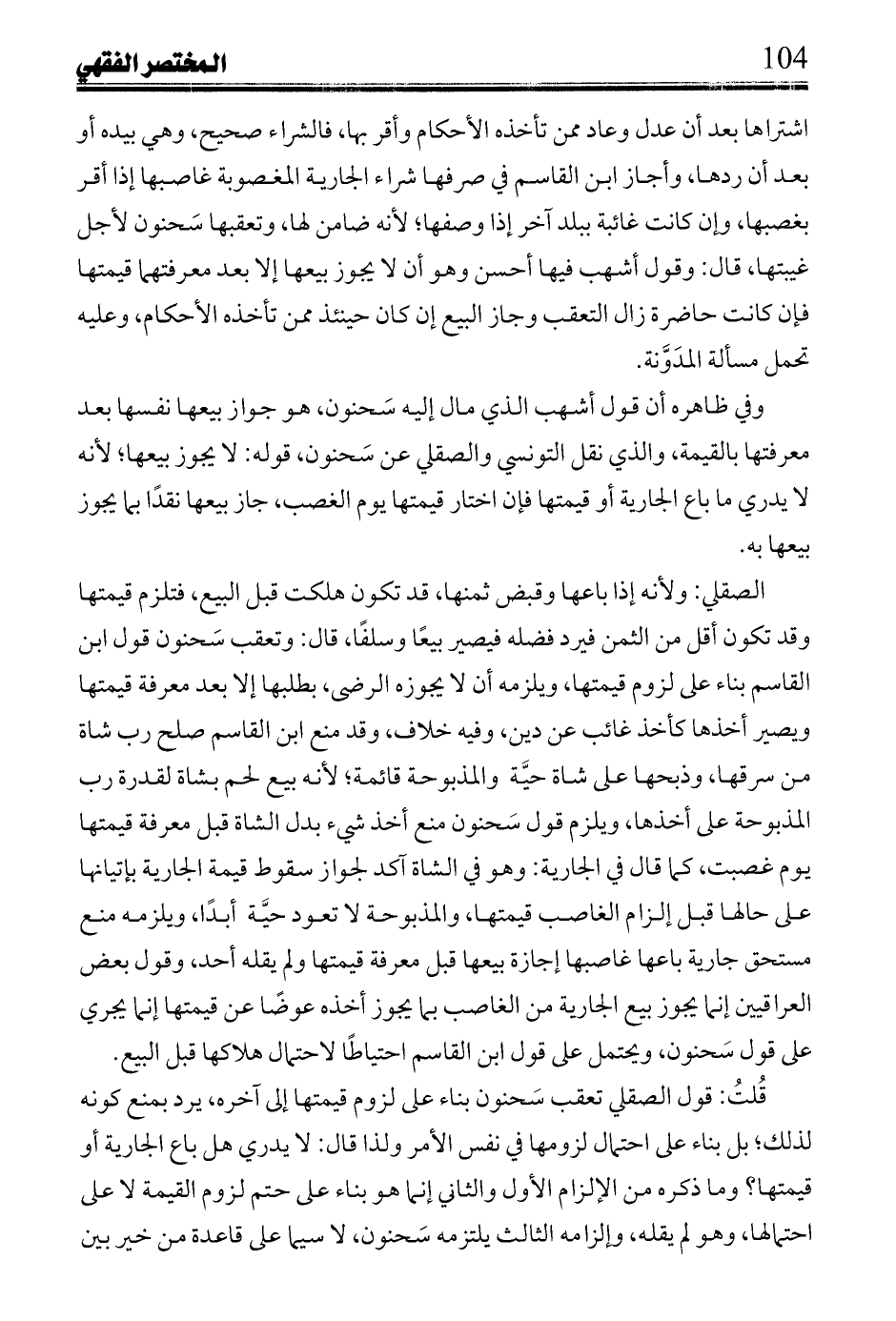 قُلتُ: يفرق بوضوح كون بيع الآبق باختيار ربه فتحققت حقيقة البيع بتحقق كل أركانه، والبائع في الغصب غير محقق اختياره؛ لأنه مكره فاختل ركن البيع، فصار المبيع كمستحق. وفي غصبها: لو باع جارية غاصبها ثم ابتاعها من ربها، فليس للغاصب نقض ما باع؛ لأنه تحلل صنيعة وكأنه غرم له قيمتها، وفي كتاب الغرر منها: من تعدى في متاع وديعة عنده فباعه ثم ورثه عن ربه فله نقضه وهو بيع غير جائز.