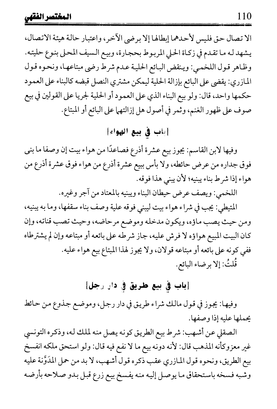 الصقلى عن محمد عن أشهب: لا يشتري من لحم شاة حية، رطل ولا عشرة ولا أقل ولا أكثر فإن نزل وكان شرع في الذبح مضى، وإن كان بعد يوم فسخته وأنكره سَحنون، فتعقب ابن عبد السلام مقتضى قول ابن الحاجب: وكرطل من شاة قبل ذبحها على الأشهر، إن مقابل الأشهر، جوازه ابتداء ولا يعرف حسن إلا أن اللخمي قال في قولها: لا تجوز الإجارة على ذبح شاة أو سلخها برطل من لحمها هذا على قول مالك؛ لأنه لحم مغيب، ويجوز على قول أشهب؛ لأنه أجاز في كتاب محمد بيع أرطال من لحم شاة قبل ذبحها إذا حبسها وعرف نحوها.