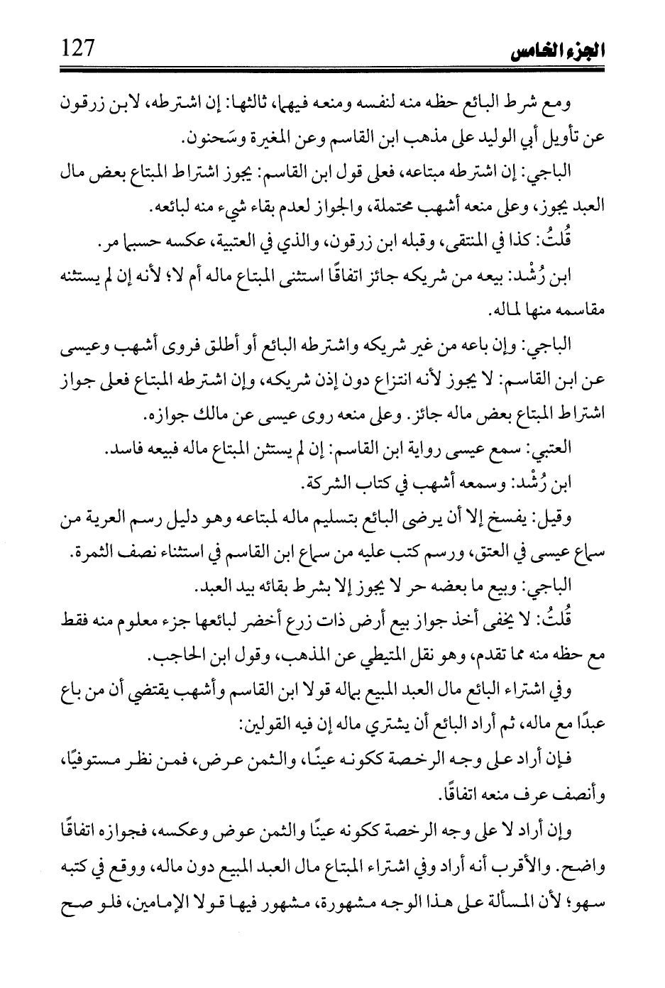 قُلتُ: هذا وما للمازري خلاف نقل ابن رُشْد عن المذهب جواز الجزاف في يسير ذلك. قال لأنه يراه ويحيط به، إلا أن يحمل قوله على اليسير جدًّا وما تقدم على ما فوقه.