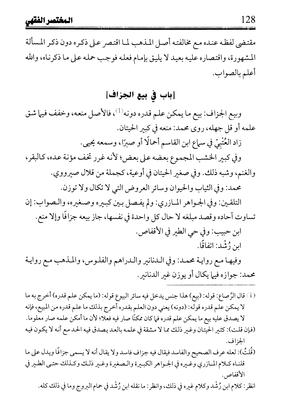 وحمله القاضي والأبهري على التحلايم حيث تجري عددًا؛ لأنه يرغب في الخفاف؛ لأنها في الوزن أكثر عددًا، ففي جزافها الغرر من وجهين: مبلغ العدد، ومبلغ الوزن، وغرر جزاف المكيل أو الموزون من مبلغ الكيل أو الوزن فقط. وقولهما يقتضي جواز جزافهما حيث لا يجريان إلا وزنًا والمسألة جارية على تعينها فيجوز جزافهما وعدمه، فيمتنع لتعلقهما بالذمة القولان في تعيينها لابن القاسم في الرواحل، وفي السلم الثاني: مع أشهب في الرواحل.