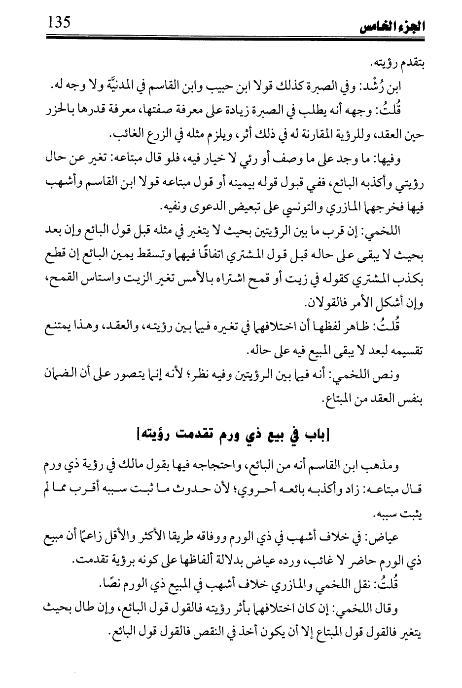 قُلتُ: وأذكر حمله بعضهم على غيبتة مفتاحه فصار ما فيه كغائب وتلقيها ابن رُشْد بالقبول كتقصير، ودليل قولها: من ابتاع ثيابًا مطوية لم ينشرها ولا وصفت له لم يجز جوازه.