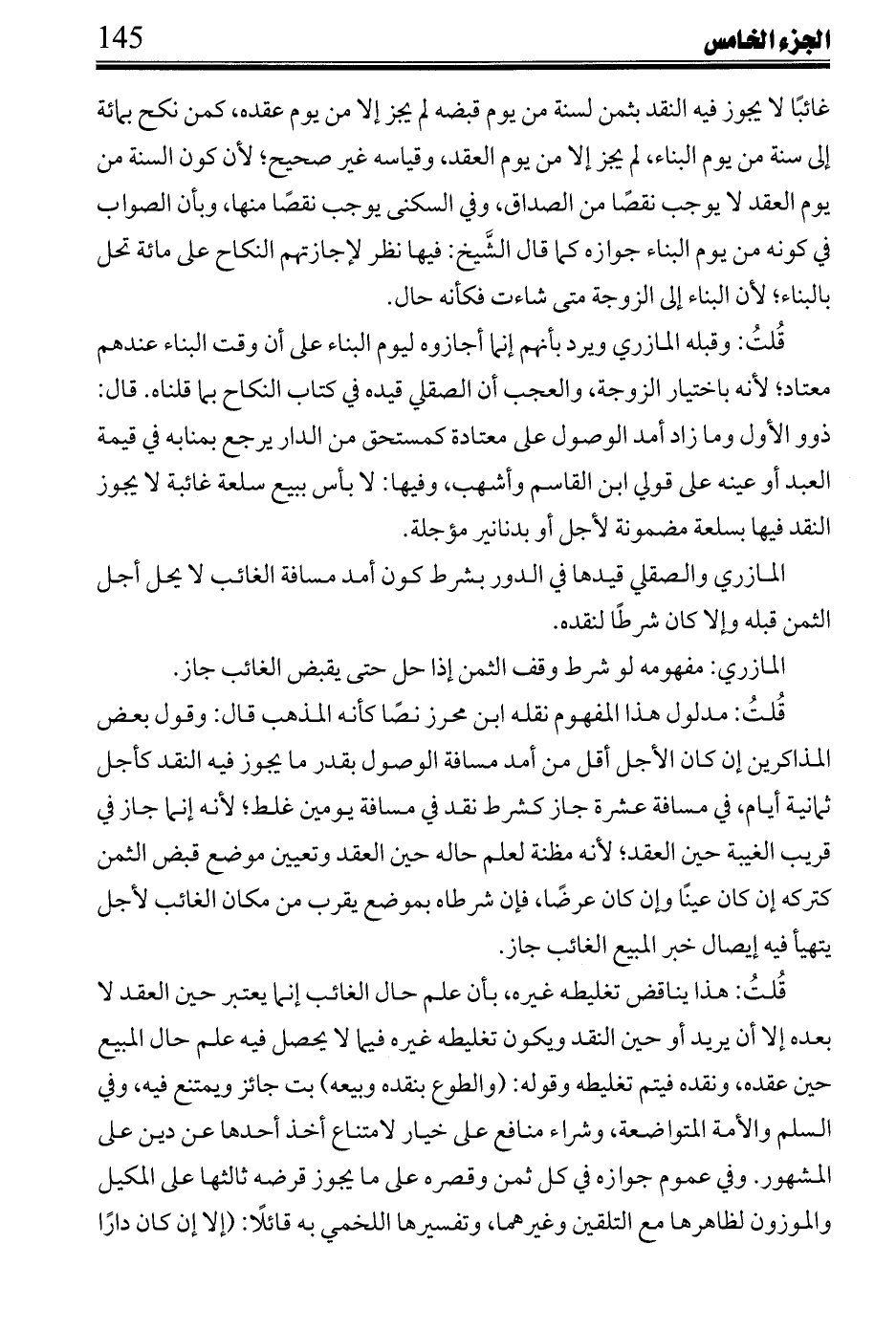 قُلتُ: فترك الوقت يؤدي للتسلسل فيجب الحكم به، وهو قول أبي حفص، وعليه قال: لو باع سلعة بمصر بأخرى بتونس بعث لها فوقفت بها وصارت كحاضر وقف.