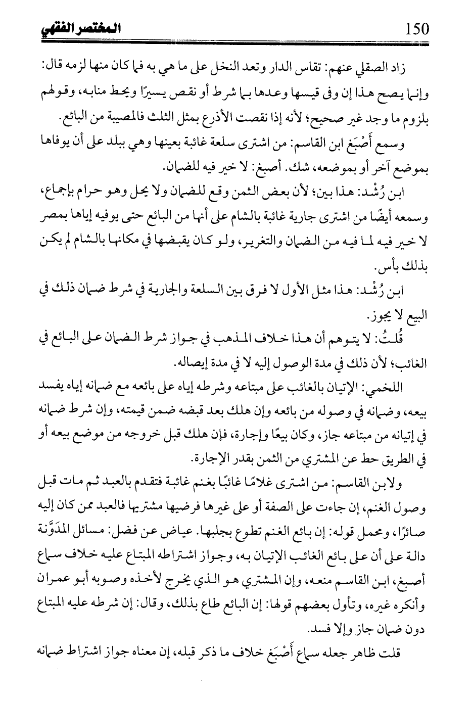 كالاختلاف فيه والمبيع حاضر، وعزا المازري المناقضة لبعض أشياخه قال: وأشار بعض المتأخرين إلى أن ابن القاسم فرق بينهما ولم يشر إلى الفرق، قال: وعندي أن الفرق بينهما، وذكر مثل ما تقدم.