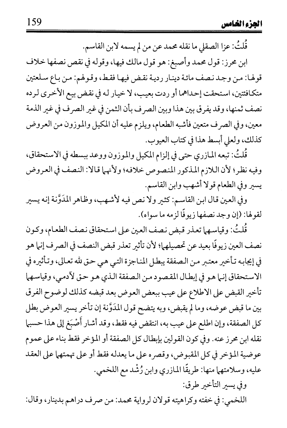 قُلتُ: وهذه الأقوال التي ذكرها المازري في الوكالة معزوة لهذه القائلين، ولم أجدها في النوادر، وذكر فيها عن محمد عن ابن القاسم: من صرف دراهم ثم باعها قبل قبضها جاز إن قبضها ودفعها لمبتاعها منه، وإن أمر الصراف بدفعها لم يجز، ثم ذكر عن محمد قال مالك: إن صرفت دينارًا بعشرين درهمًا قبضت عشرة، وأمرته بدفع عشرة لمن معك من ثمن سلعة لم يعجبني حتى تقبضها.